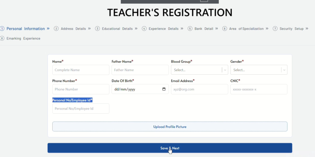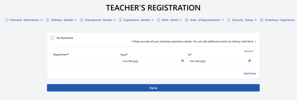 - Fill Your Department like Education. Sector (Governmentor Private) Write about your Experience type like professional or Teaching. Job Type: Contract or Regular