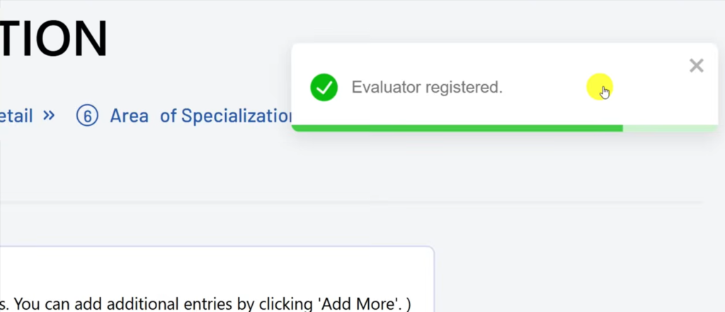 - Adpfter Clicking Sign up you will see Evaluator Registered on Screen.