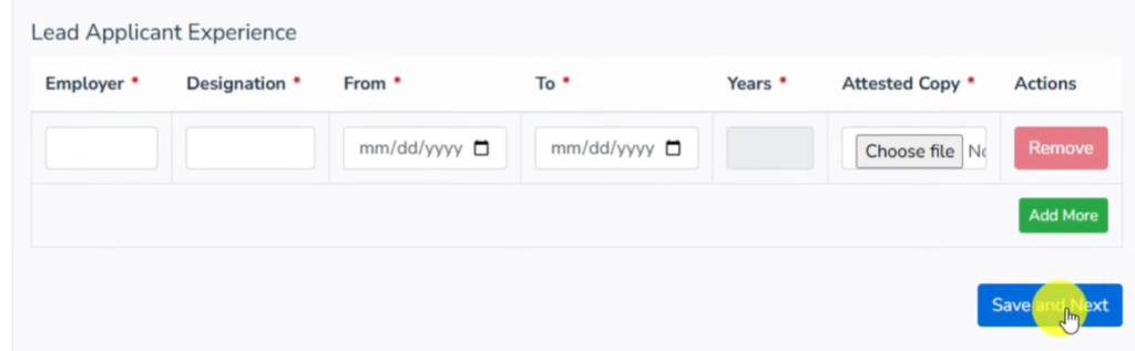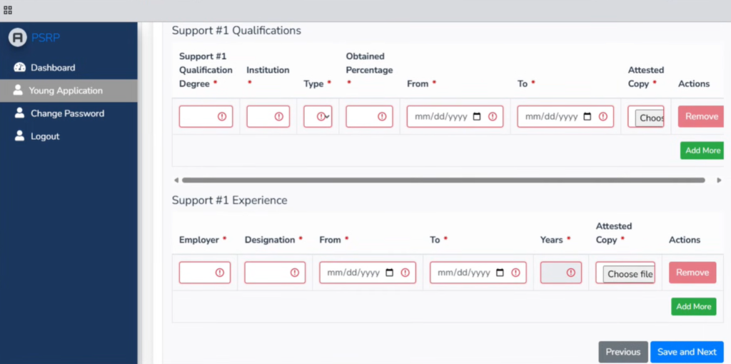 Similarly Fill all the details, Qualifications and Experience of Supporter#2 and Click Next & Save BUtton.