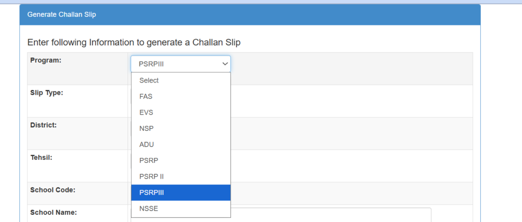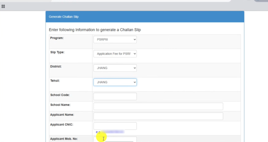 Generate Challan Form
