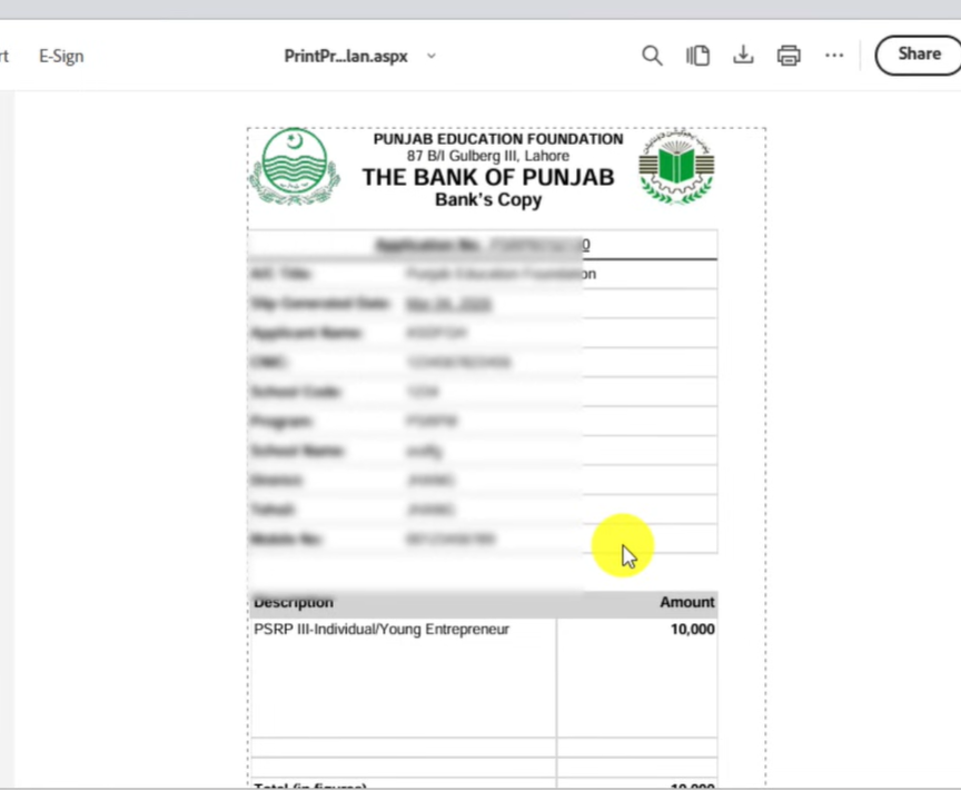 Take its Print and Deposit in Bank of Punjab.